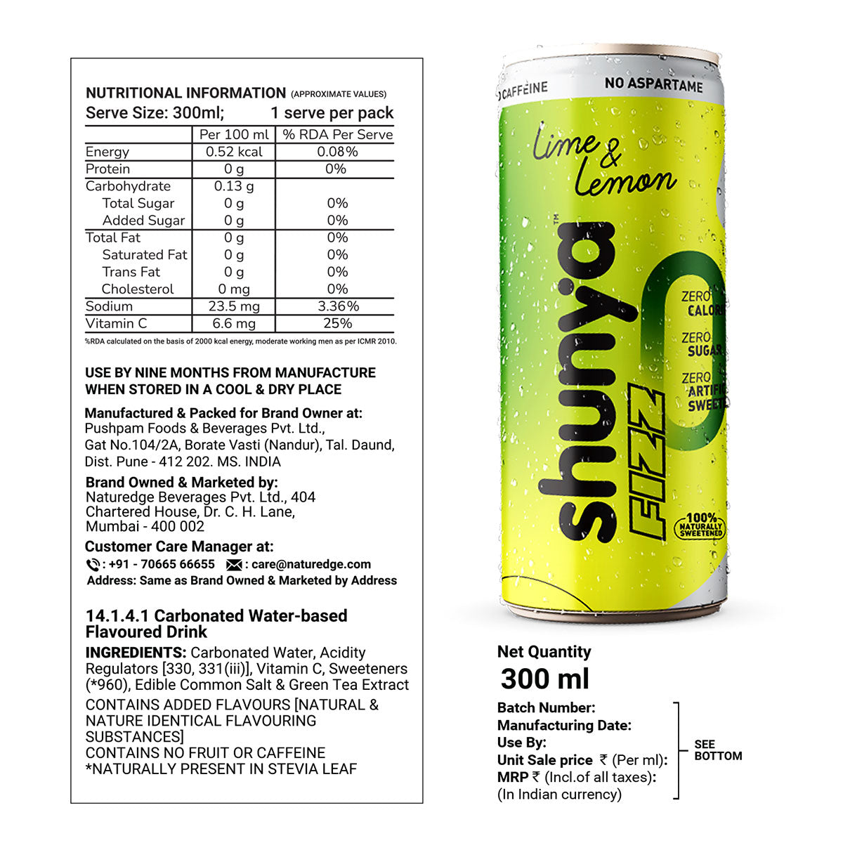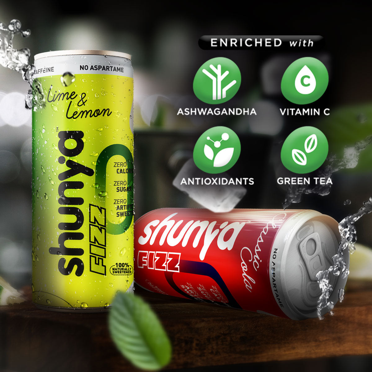 We cut out the caffeine and brought in Ashwagandha instead – a super herb that boosts energy and releases stress. To make things better still, every can of Shunya Fizz gives you an immunity boost with a generous dose of antioxidants and a whole lot of Vitamin C (50% of your Recommended Daily Allowance).